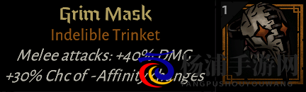 阴郁面具:近战伤害增加+40%(相当于单个饰品就能达到邪教金色饰品给的伤害,限定是近战),但装备该饰品的人物角色和其他人物角色之间的互动为敌对互动的概率增加30%。